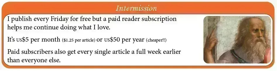 The working title is How Geeks Ate the World and I’m going to be dropping parts of the draft into this very newsletter as the project comes along—but only for paid subscribers. So if you want to read along in real time, please consider subscribing. Otherwise I’ll be keeping you in the loop. Check it out here: